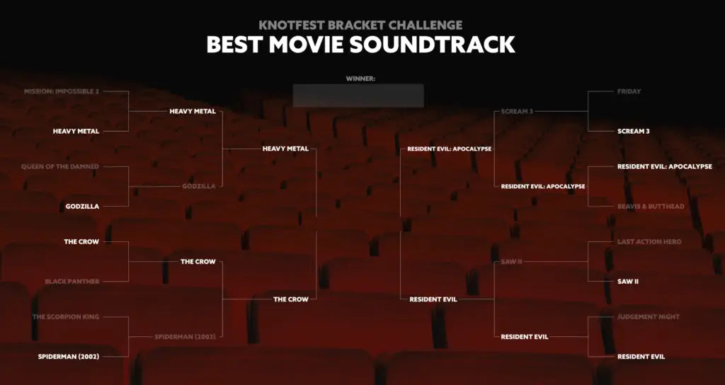 The bracket challenge is back and this time, Knotfest is asking the fans to weigh in on an often hotly-contested topic of discussion - which movie soundtrack is tops, especially when it comes to the heavier end of the stylistic spectrum.
