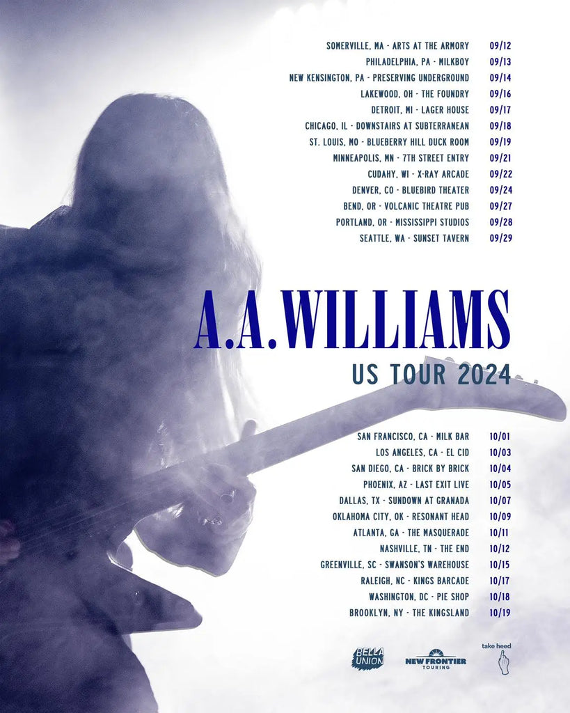 A current list of live dates and cities for A.A. Willams can be found below. The latest single, "Splinter" is now available - HERE