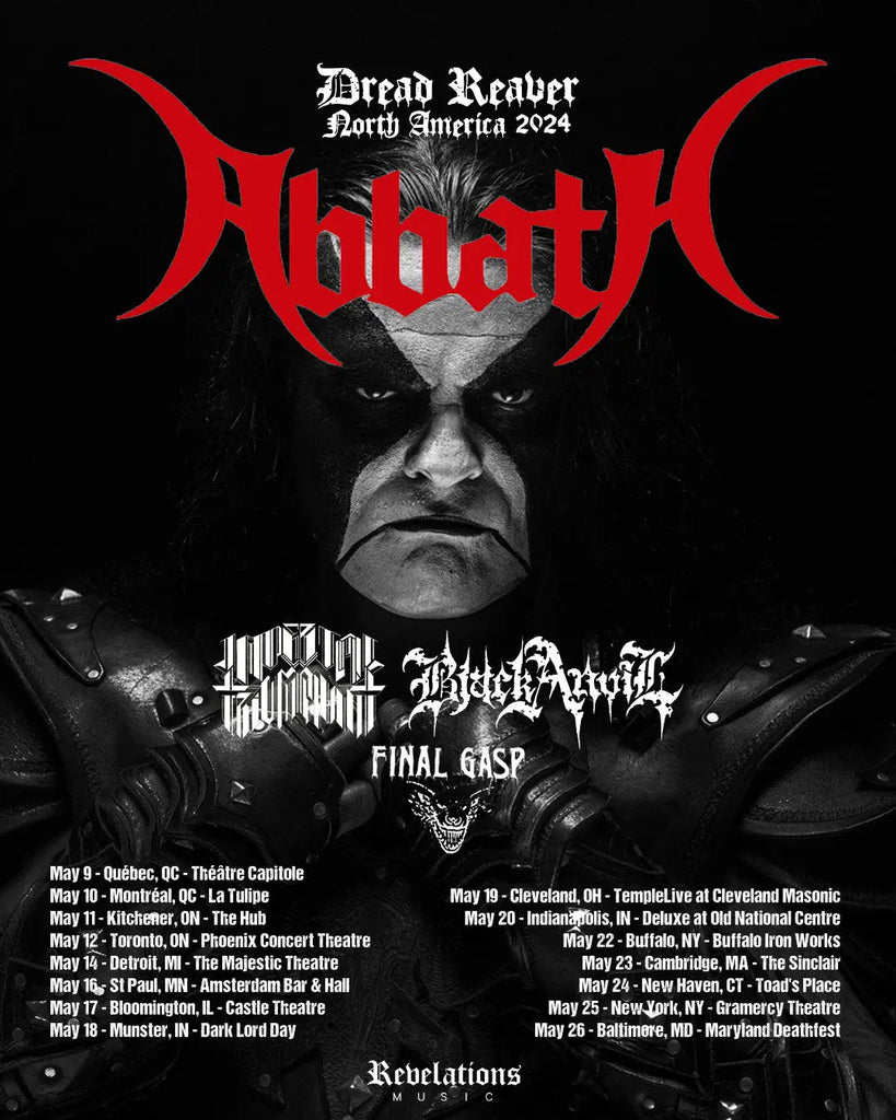 Abbath, the project spearheaded by Immortal vocalist/guitarist Abbath Doom Occulta have announced plans to tour North America for the first time since 2019. The run will showcase selections from Abbath's most recent full length, Dread Reaver which landed late 2022 via Season of Mist.