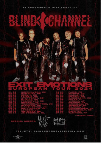 In tandem with the album announcement, Blind Channel has big tour plans in the pipeline for the rest of 2023 and the upcoming year. Topping the list is their own “Exit Emotions” European headlining tour slated for Spring 2024. The tour is set to launch in Oberhausen, Germany, on March 21, spanning 30 cities before wrapping up in Tampere, Finland, on April 27.