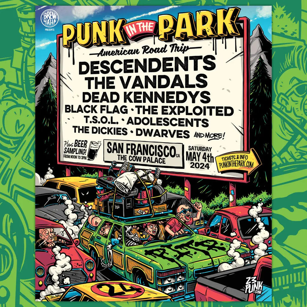Set for May 4th, the Punk In the Park American Road Trip will feature a stellar line up of legends with Descendents earning top billing with the likes of The Vandals and Dead Kennedys sweetening the pot. Also confirmed for the full day festival, fans will get to see sets from Black Flag, The Exploited, T.S.O.L., Adolescents, The Dickies, Dwarves and more still to be announced.