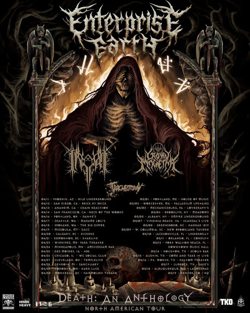 In support of the pivotal release, Enterprise Earth has announced plans to hit the road for a North American headlining tour spanning an ambitious 35 dates. Joining the caravan, Enterprise Earth have enlisted Inferi, Crown Magentar and Tracheotomy for a can't miss bill.