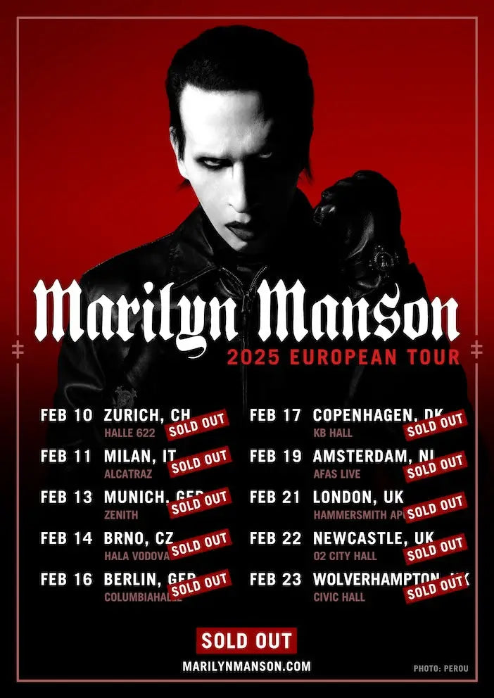 In support of the new album, Manson will mark his return to European soil witha 2025 European tour set for February of 2025. The trek begins February 10th in Zurich, Switzerland and closes out in Wolverhampton, UK on February 23rd with stops in Milan, Berlin and London along the way.