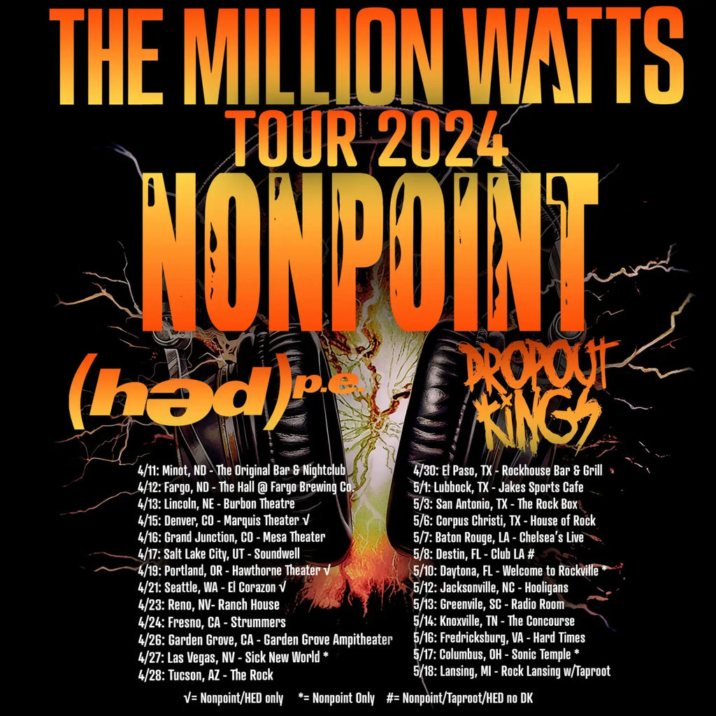 Tapping into the success of last year's Million Watts Tour that saw Nonpoint team with (hed) p.e. and Sumo Cyco, the Floridian nu-metal heroes have announced plans to head a second leg of the tour kicking off this April.