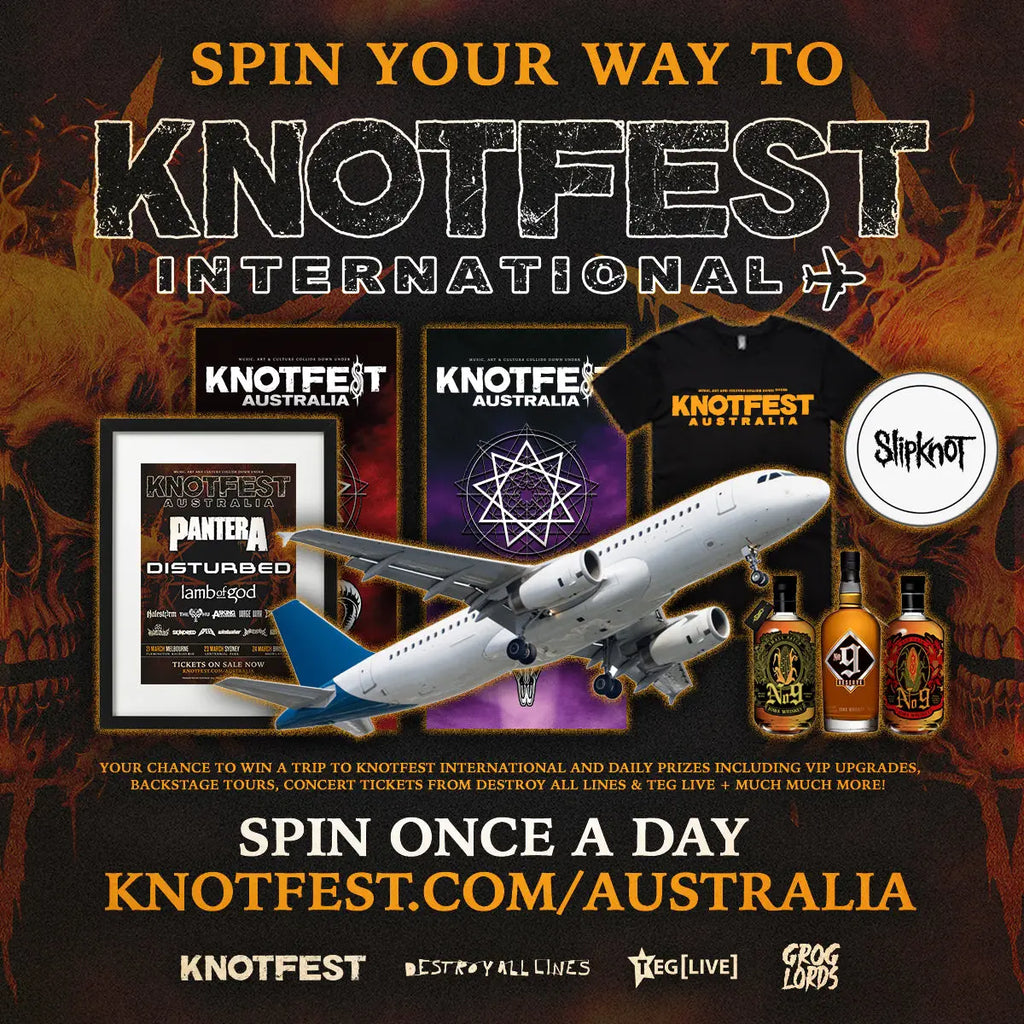 In addition to spinning every day, participating fans must share in 25 words or less, their ultimate Knotfest adventure. From there, participants will be able to spin to win several different prizes - some 36 in all - ranging from signed and framed Knotfest concert posters, Slipknot Whiskey bottles, VIP upgrades and even a backstage tour and dinner package.