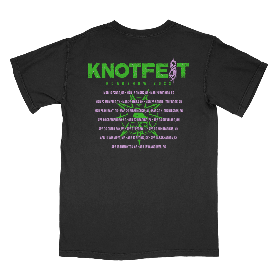 A unisex crewneck t-shirt in black with Knotfest Roadshow 2022 "Deathknot" printed on the front.